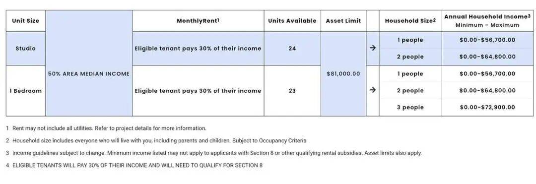 整栋楼为100%老年人专属住房,户主必须至少年满62岁,大楼同时提供无障碍设计,其中5%房源预留给行动不便人士,2%房源预留给听力或视力障碍人士。