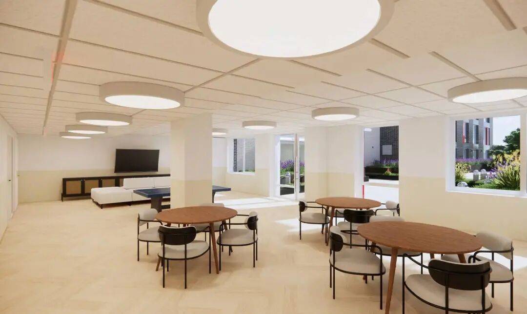 例如,一楼设有占地1万平方英尺的老年中心,由Catholic Charities运营,日常提供热食、健身课程、社工个案管理与社区活动,更接近“社区型养老+独立居住”,是传统养老院的升级版。