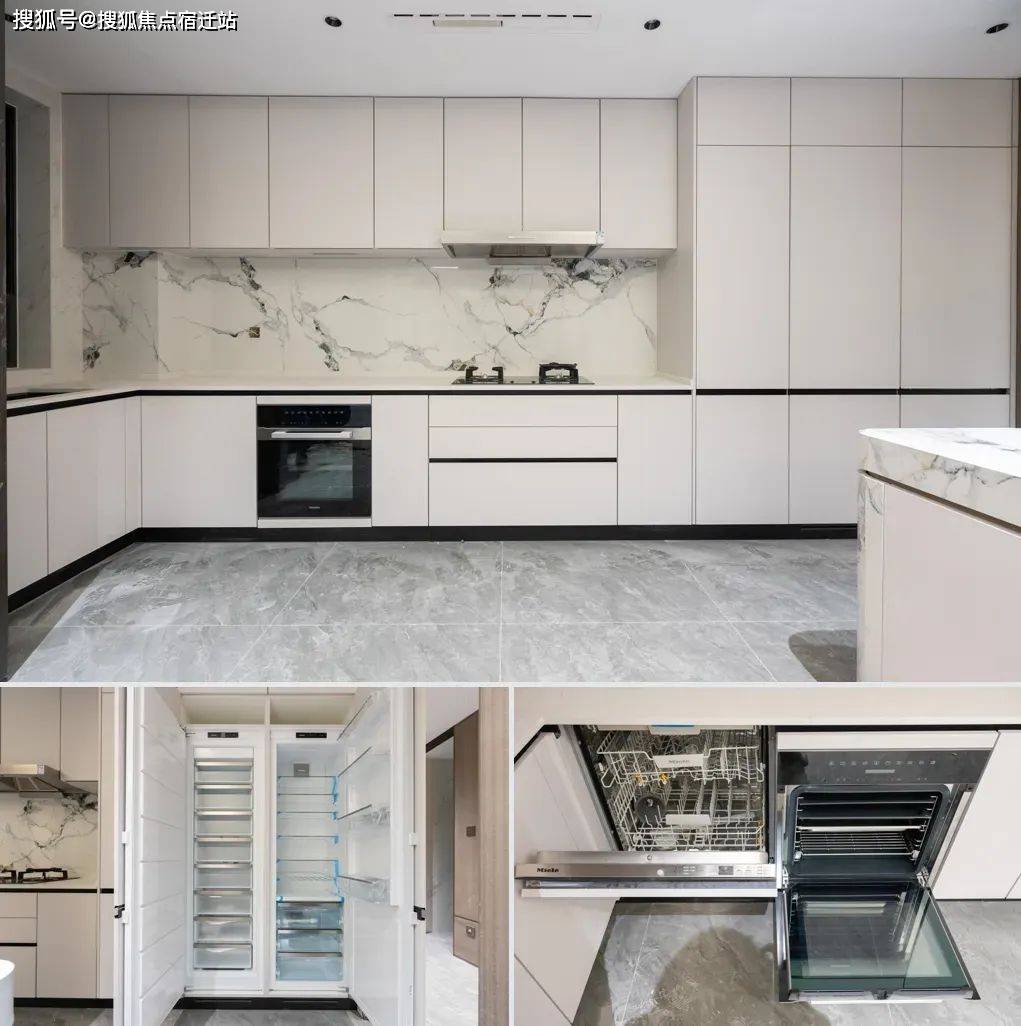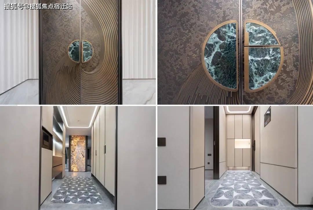 的装甲门、白色系玉石的定制门牌号、白雪公主透光云石的玄关柜面、内置消杀机的鞋柜、圆弧吊顶和感应灯、普罗旺斯水晶灰岩板背景墙以及地面拼花设计、定制墙纸、全屋智能化系统,中铁世博云境的品质细节武装到了牙齿!
