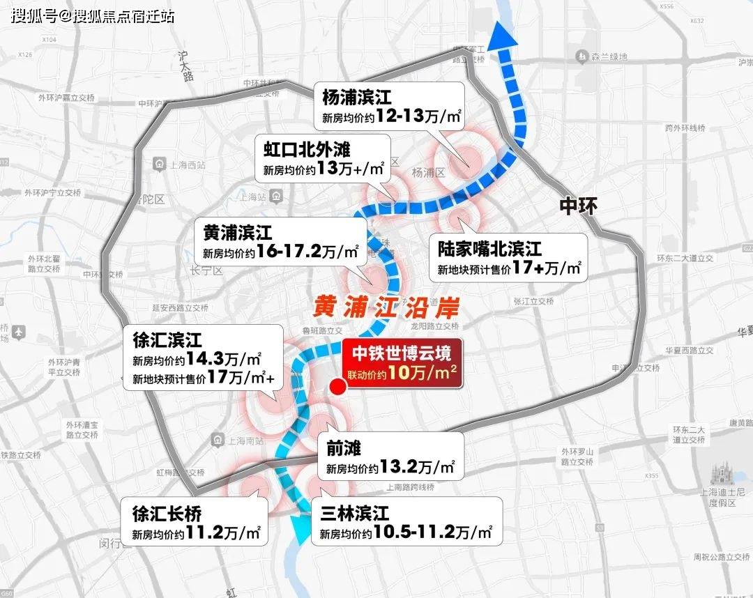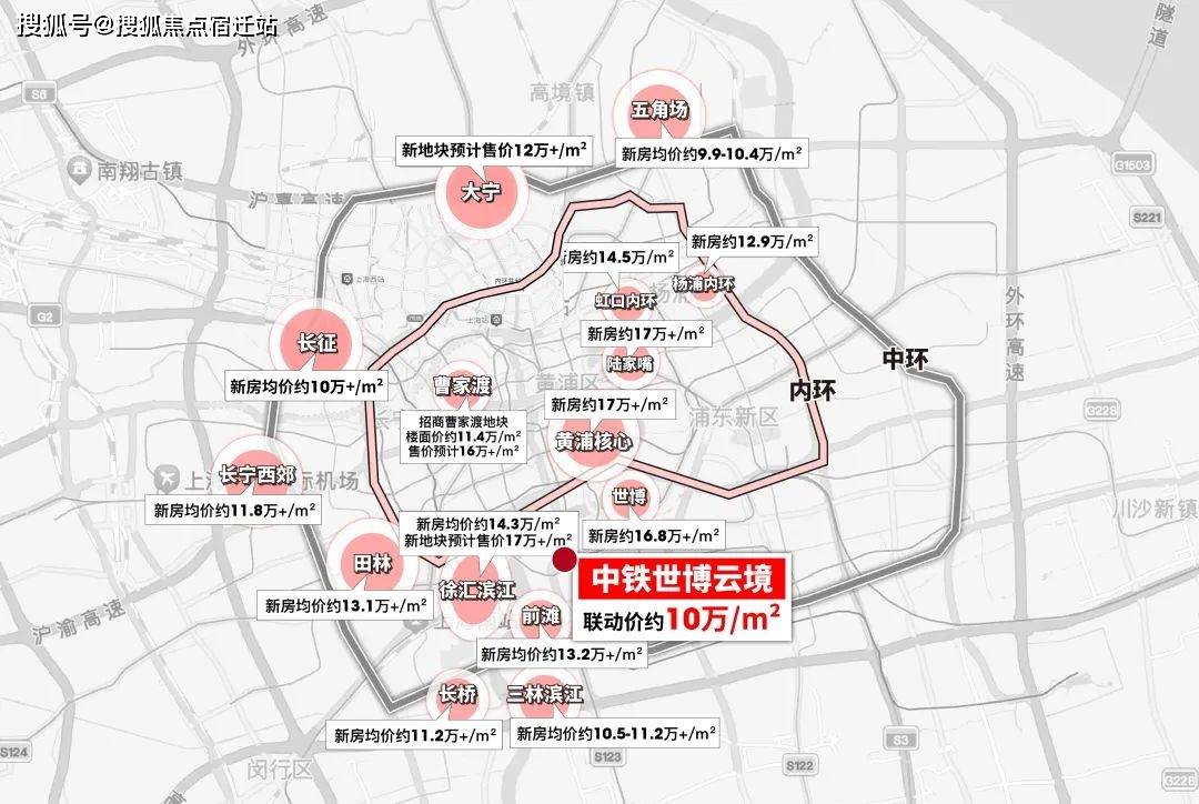 、内中环普遍来到12万/㎡+;甚至中环外的徐汇长桥、三林滨江也突破11万