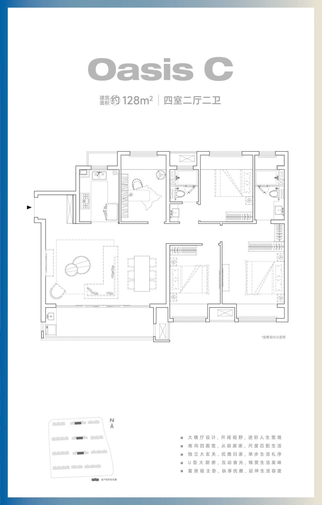 纯粹业态:全系10-11层洋房,一梯两户无连廊设计,楼间距最宽达44米,保障每户采光与私密性,社区居住氛围纯粹。