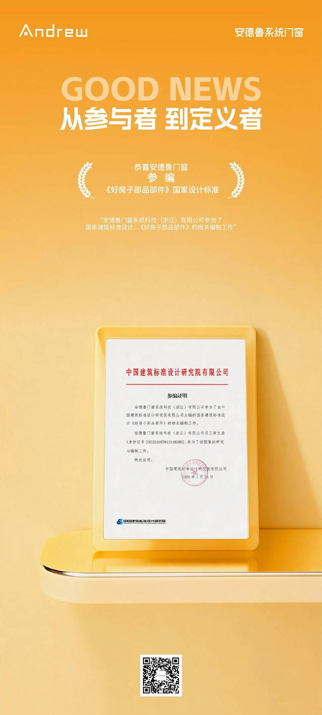 这份沉甸甸的参编证明,不仅是对团队专业能力的肯定,更是安德鲁系统门窗以技术驱动行业进步的有力见证。